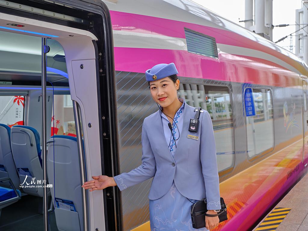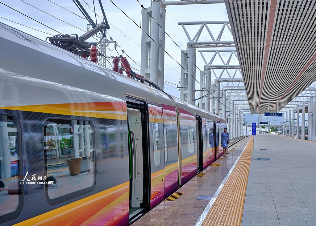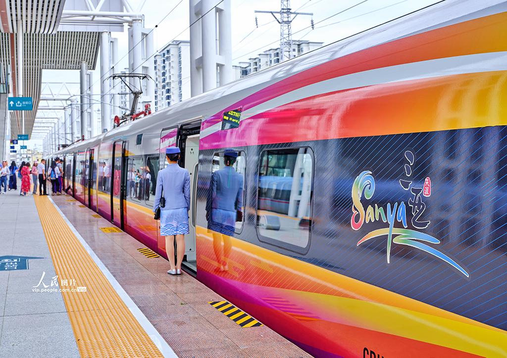 作为海南省重大基础设施,三乐旅游铁路有效整合海南西部旅游资源,构建高效综合交通网络,不仅促进三亚经济圈互联互通,也提升了旅游服务能级,为海南自贸港建设注入新活力。史家民摄(人民图片网)